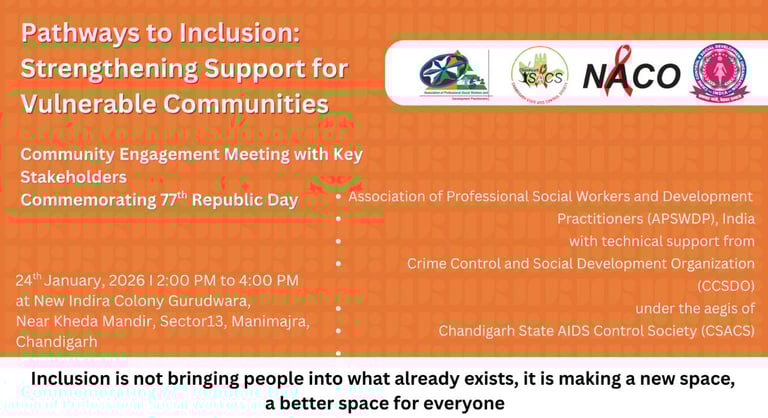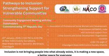 Crime Control and Social Development Organisation (CCSDO) proudly collaborated in the Community Engagement Meeting with Key Stakeholders organized with APSWDP under the aegis of Chandigarh State AIDS Control Society (CSACS).