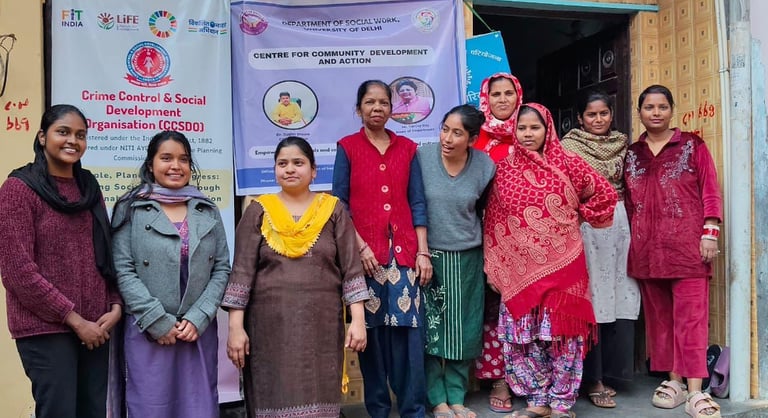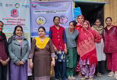 Crime Control and Social Development Organisation (CCSDO), in collaboration with the Department of Social Work, University of Delhi, conducted a Menstrual Hygiene Awareness Session for women and young girls in Indira Basti and Timarpur Basti.